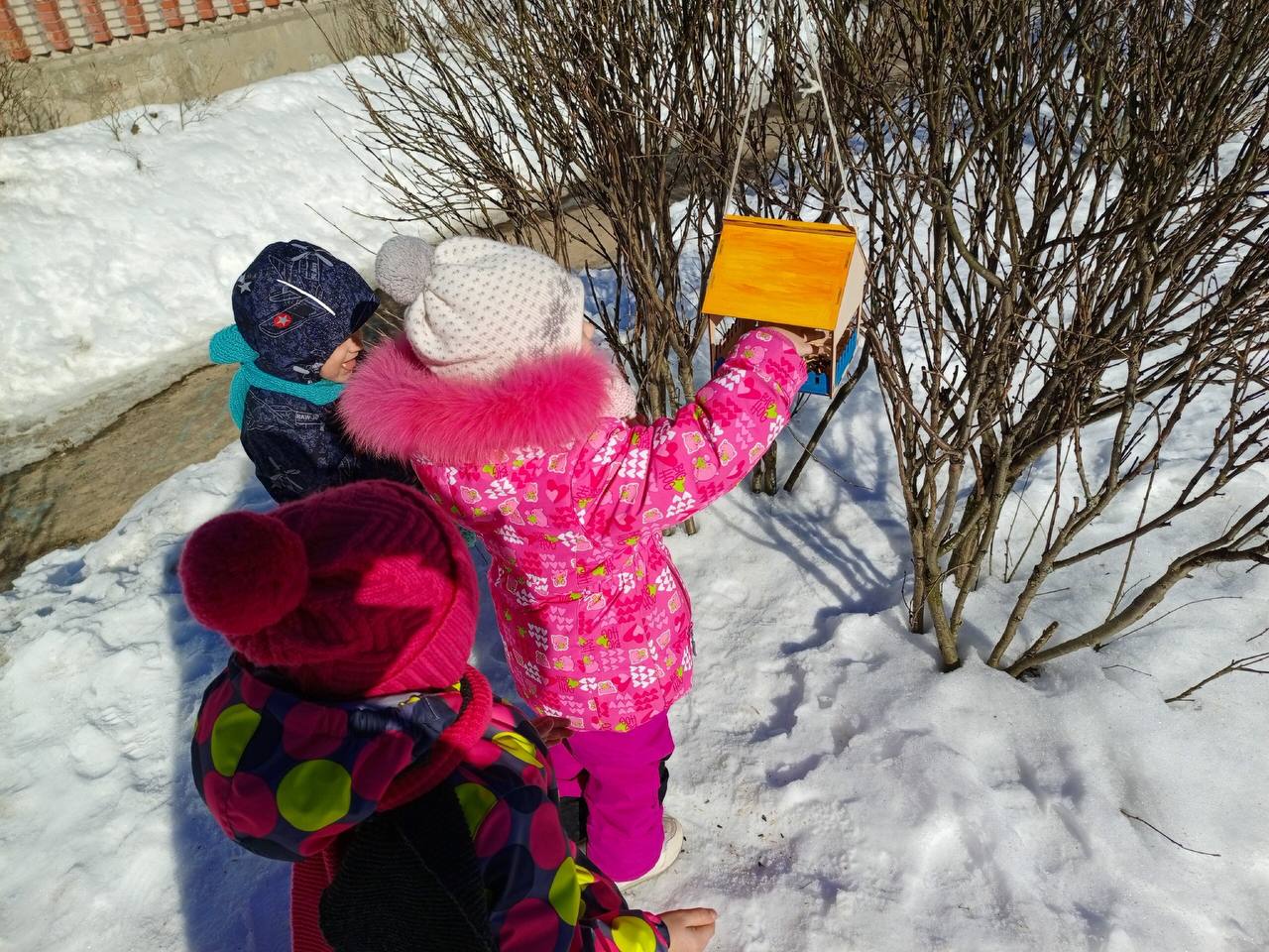 Ежегодно 1 апреля во многих странах мира отмечается «День птиц» С приходом весны к нам возвращаются наши друзья- пернатые птицы. К встрече желанных гостей надо хорошо подготовиться. В наши дни для птиц мастерят не только самые разнообразные кормушки, подкармливают пернатых, которые остаются зимовать, но и активно участвуют в строительстве скворечников, кормушек. В рамках проекта «Мир птиц» родители группы «Ёлочка» приняли активное участие в строительстве скворечников, кормушек, а так же принесли корм для птиц. Дети с большим удовольствием развесили кормушки на участке и покормили птиц.