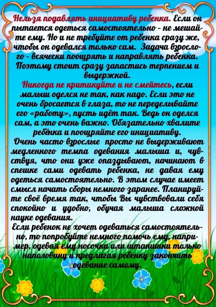 В это же время необходимо обратить внимание на формирование навыков самостоятельности.