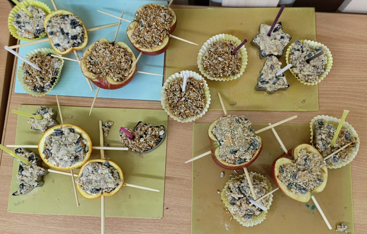 В холодное время года птицам трудно добывать себе корм. Травы со вкусными семенами скрыты под снегом, ягоды с деревьев уже подъедены, но мы можем помочь в холода птицам подкармливая их вместе с детьми. В подготовительной группе «Ёлочка» в рамках «Дня добрых дел» была проведена работа по изготовлению экокормушек для птиц. Родители с удовольствием откликнулись на предложение помочь зимующим птицам. Воспитатели группы совместно с детьми изготовили экокормушки, которые позволят пернатым легко находить корм даже самые лютые морозы. Получились замечательные «столовые» для птиц. Во время прогулки воспитатели с ребятами развесили кормушки на территории детского сада. Подкармливая пернатых, дети проявляют тем самым не только заботу, но и расширяют свои знания о птицах, особенностях их внешнего вида. Одним из самых любимых занятий у детей является наблюдение за птицами, которые окружают и радуют детей в любое время года.