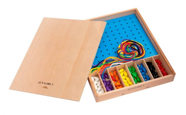 Это необычная мозаика, где рисунок выкладывается не фигурами, а протянутыми между ними шнурками. Можно использовать как дидактическую игру, где малышам предстоит решить трудную головоломку. Либо как творческий инвентарь, на котором они создают рисунки и хвастаются результатами.